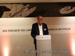 Rund 160 Vertreter:innen aus den nordrheinwestfälischen Lebenshilfen – darunter erfreulich viele Menschen mit Behinderung – und Landtagsabgeordnete waren der Einladung von Landtagspräsident André Kuper und Landesvorsitzendem Prof. Dr. Gerd Ascheid gefolgt. Landtagsvizepräsident Reiner Schmelzer begrüßte die Anwesenden, Kuper war durch die parallel laufende Plenardebatte verhindert. "Teilhabe heißt die Party mit zu organisieren", sagte Schmelzer, der weiter das Engagement der Lebenshilfe als "starker und wirkungsvoller Dachverband für Menschen mit Behinderung und ihre Angehörigen" betonte.
